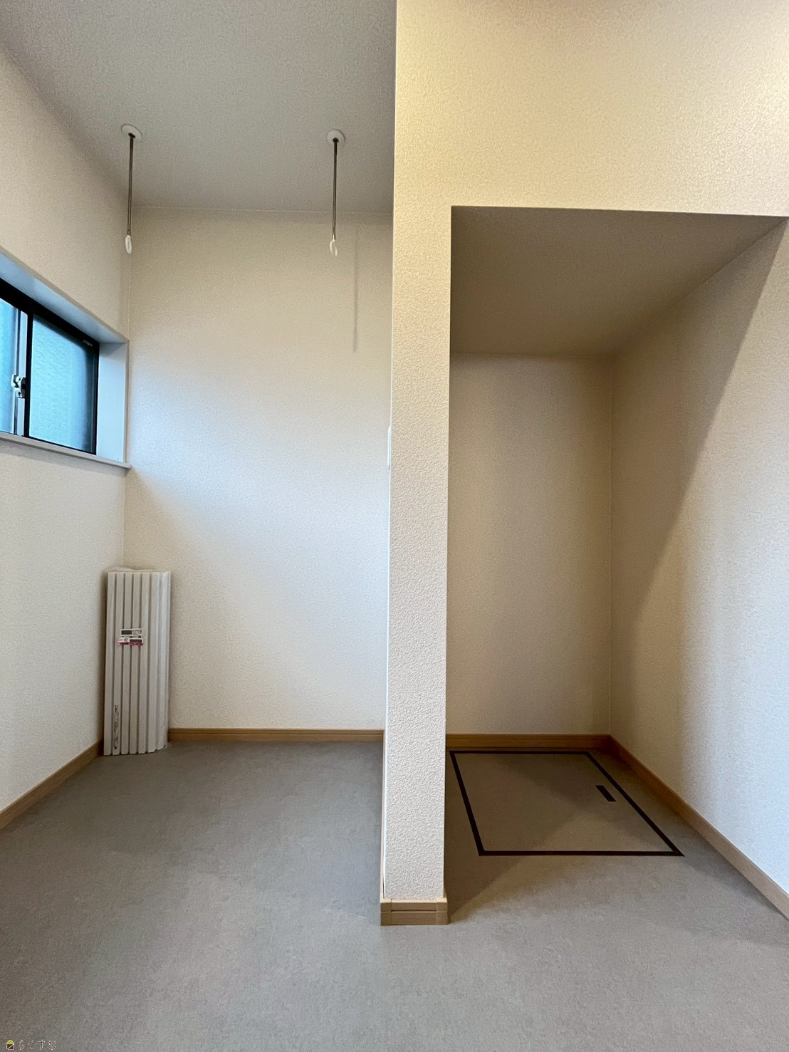 ホスクリーンが設置済みで、洗濯機からそのまま洗濯物が干せます
