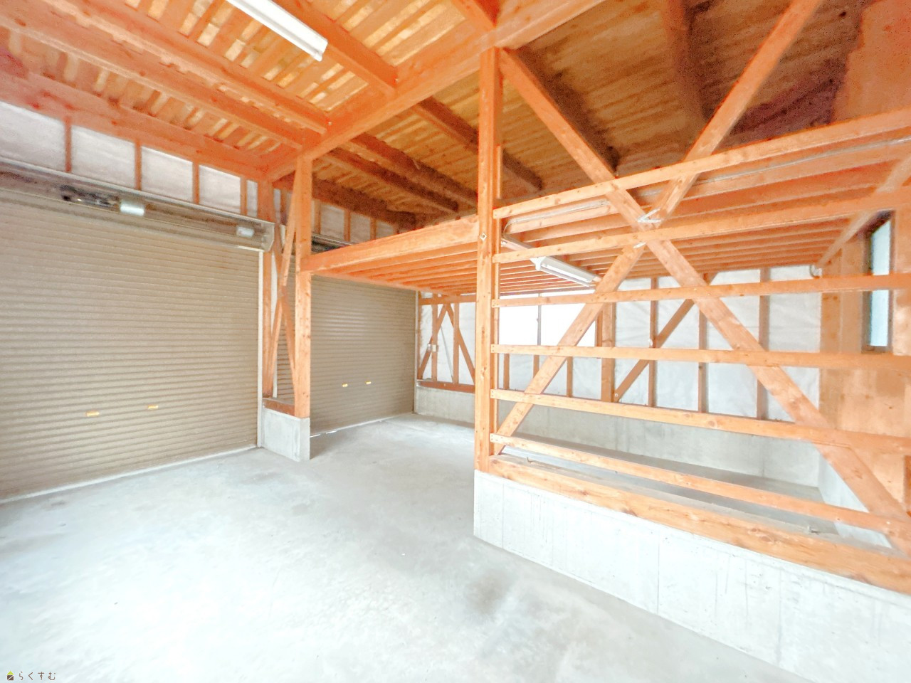 【リフォーム中】棚付きの高さある車庫で、収納にも便利です。