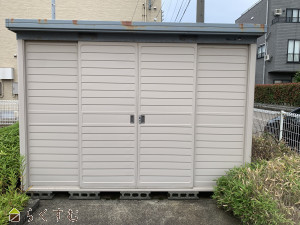 公園目の前にあるタクボ物置です。シーズンオフの物を保管するのに便利な大きさ。広さ1畳・高さ1.8m