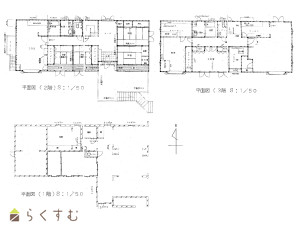6LDK (和室:7.5畳、7.5畳、4.5畳、4.5畳) (洋室:13、8.5)、2階LDK約20、3階LDK約26、FP工法の機密性能のよい住宅です