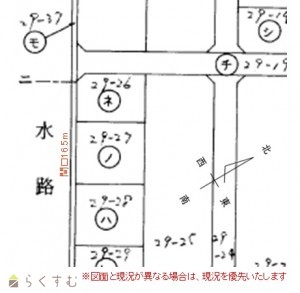整形地、前道6m以上、更地、スーパー近く、建築条件なし、所有権、側溝、電気、都市ガス(宅地内)、上水道(宅地内)、下水道(宅地内)、住宅向け
