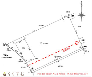 敷地内南側の隣地境界線より約3mの地中に柏崎市所有の暗渠排水が埋設されています。