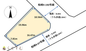北東側:市道8.8m、南東側:市道9.4m