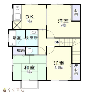 3DK (和室:6畳) (洋室:7、5.5)、DK6